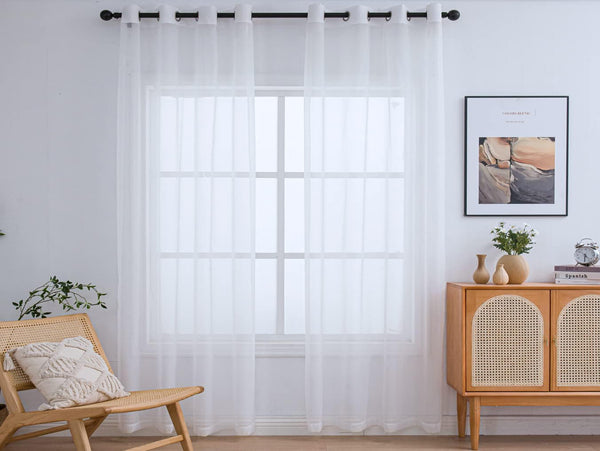וילון שיפון לבן 160×140 ס"מ עם טבעות נחושת – וילון קליל ואוורירי לחדר השינה או הסלון של המותג Karl Louis – מבית כחול לבן עשוי 100% בד פוליאסטר מסוג וואל...